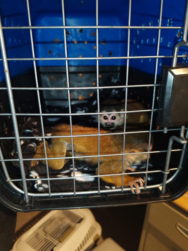 Hombre llevaba 15 monos de la especie Tití en una caja