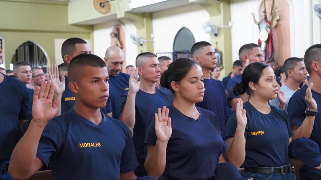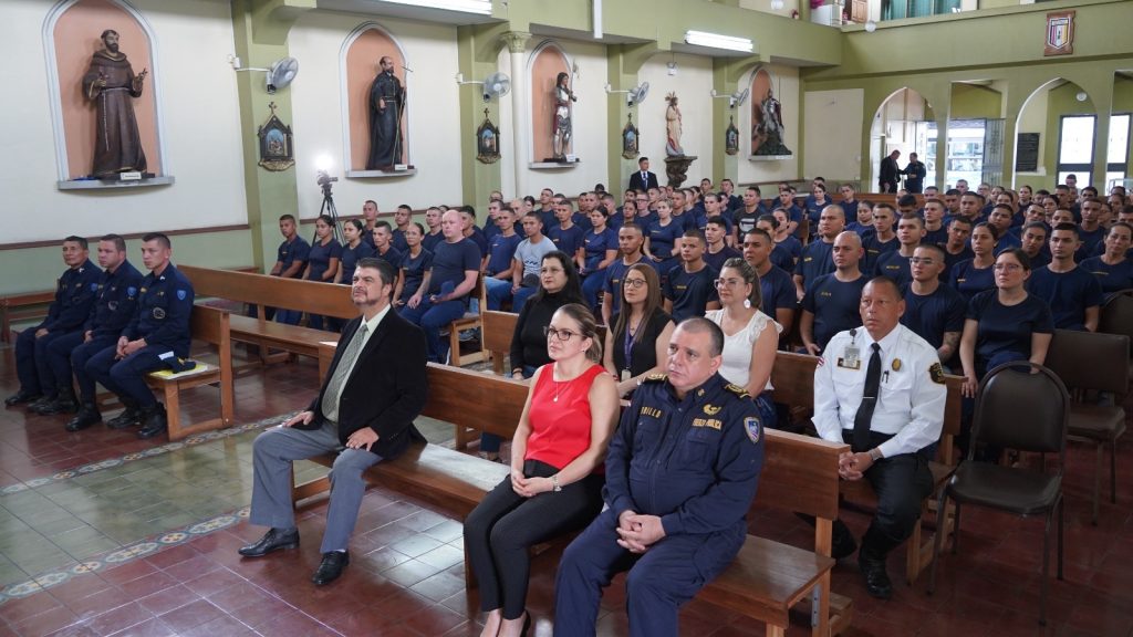 La mañana de este jueves, el ministro de Seguridad Pública, Mario Zamora Cordero, juramentó al grupo de futuros policías, durante una ceremonia efectuada en la Capellanía del Ministerio de Seguridad.