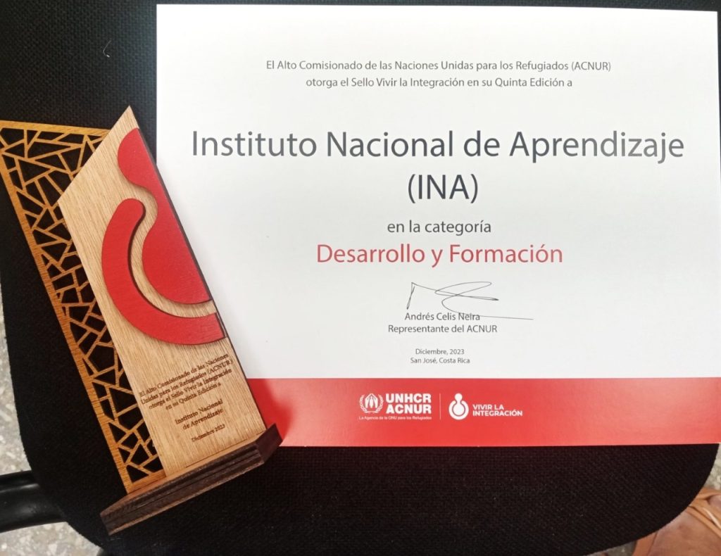 El INA, es una de las instituciones destacadas en la V Edición del Sello Vivir la Integración, entregada por ACNUR. Desde el 2017, esta certificación permite evaluar la responsabilidad social y los compromisos que mantienen distintos tipos de organizaciones con esta población.