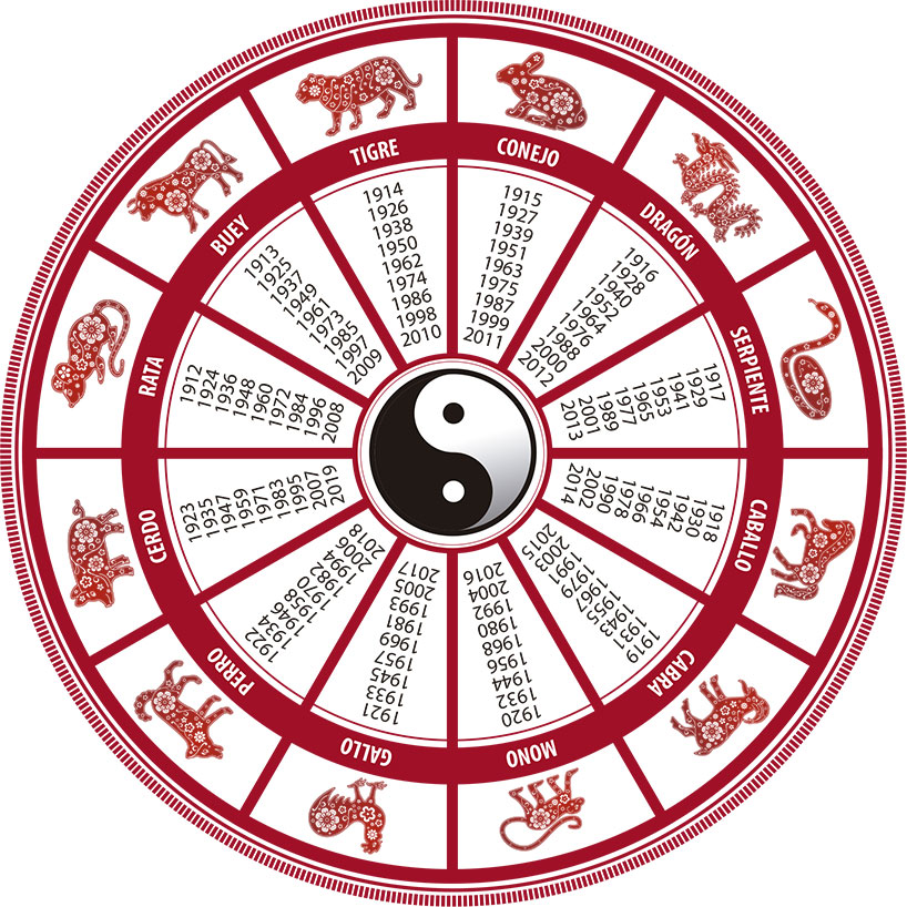 Los 12 animales del horóscopo chino (tigre, conejo, dragón, serpiente, caballo, cabra, mono, gallo, perro, cerdo, rata, buey) cambian con base a la rotación cíclica de los cinco elementos (metal, madera, agua, fuego, tierra) la cual se lleva a cabo cada 60 años.