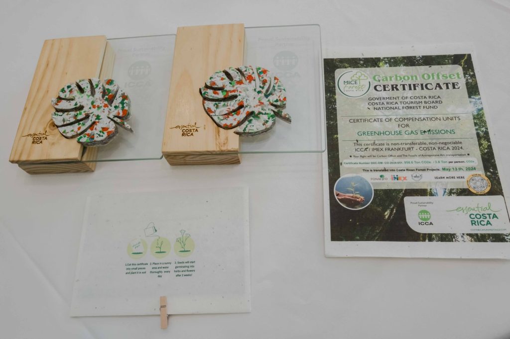 La firma de dicha adhesión ocurrió en el marco de la feria IMEX 2024 dedicada al turismo de reuniones que se realizó en Frankfurt Alemania la semana anterior con la presencia de más de 250 invitados a quienes se les descontaron aproximadamente 950 toneladas de carbono compensando sus vuelos y recibieron “un certificado de compensación que tenía la posibilidad de ser sembrado”, ya que incluía semillas como una acción consecuente con la dinámica del evento.