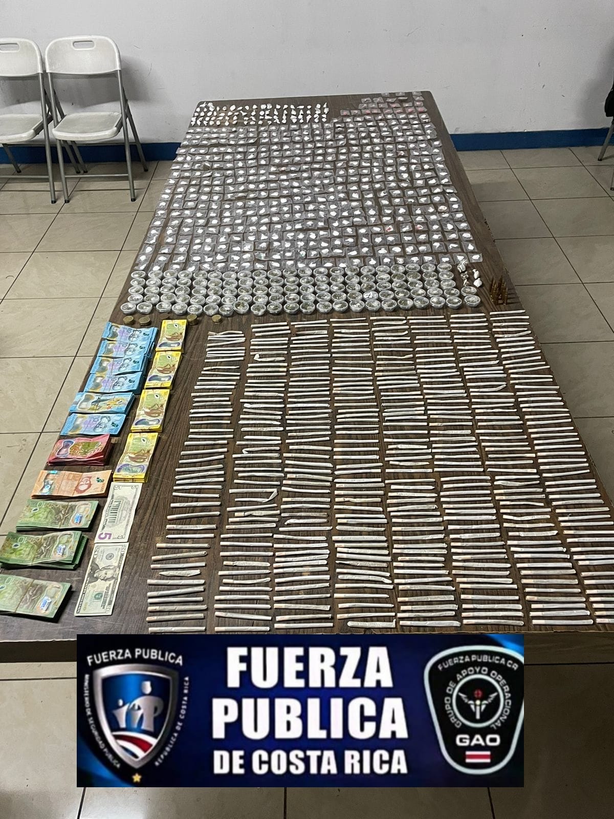 Por último, se logró decomisar un total de 2 millones 452 mil colones y 31 mil dólares, mucho de este dinero, proviene del narcotráfico.
