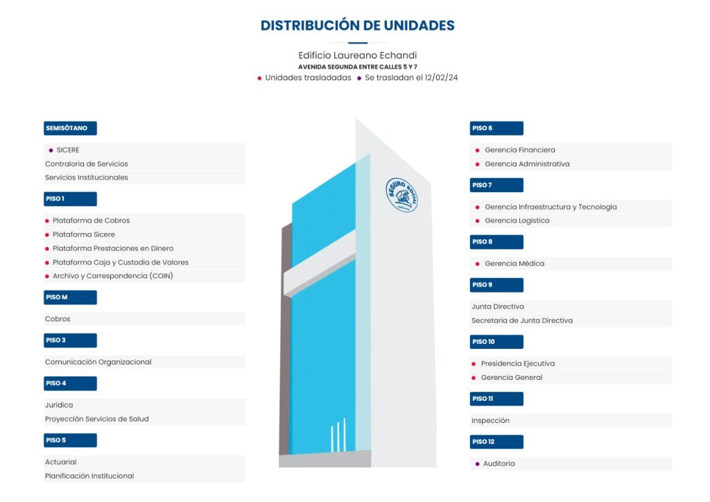 Los detalles de las ubicaciones de las unidades del nivel central están disponibles en el enlace: https://www.ccss.sa.cr/web/regresamos/