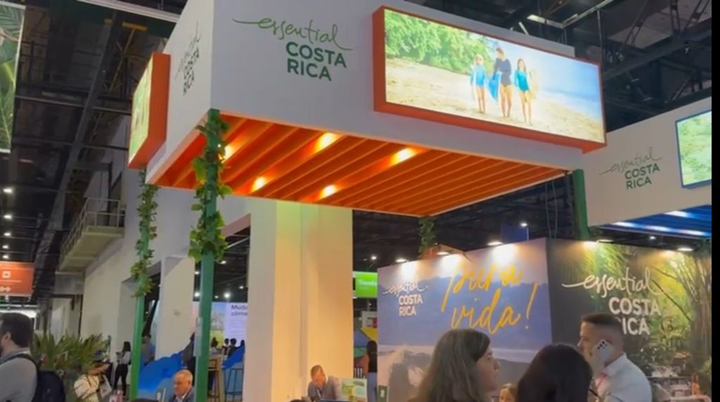 El stand de Costa Rica destaca con un moderno diseño e imágenes de gran formato que muestran belleza de las playas, el folclor costarricense, la majestuosidad de los bosques, ríos, volcanes, aguas termales y algunos representantes de nuestra fauna como tucanes, quetzales y perezosos. Se destaca además el “Pura Vida” y cómo Costa Rica en la actualidad es “más esencial que nunca” para todos los viajeros potenciales que quieren