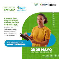 El próximo 28 de mayo en el Centro de Convenciones, más de 130 empresas nacionales, multinacionales y organizaciones ofrecerán más de 6.400 puestos de trabajo en la Feria de Empleo Talent Costa Rica, organizada por la Promotora del Comercio Exterior de Costa Rica (PROCOMER), bajo la estrategia nacional de empleabilidad y talento humano BRETE, en alianza con el Ministerio de Trabajo y Seguridad Social (MTSS) y el Instituto Nacional de Aprendizaje (INA).