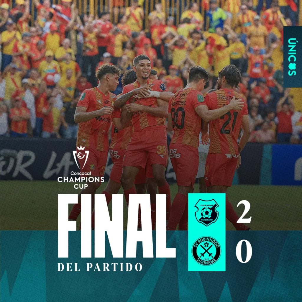 El Club Sport Herediano venció al conjunto de SV Robinhood de Surinam 2-0 en el juego de ida de los octavos de final de la Copa de Campeones de Concacaf.