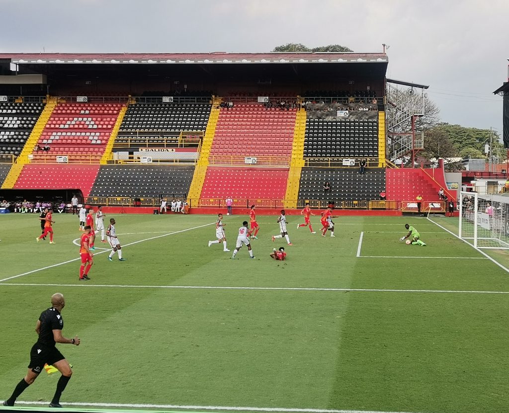 En los primeros minutos del juego en el estadio Alejandro Morera Soto, Francisco Rodríguez tuvo la oportunidad de abrir el marcador con un cabezazo, pero el portero del SV Robinhood, Jonathan Fonkel, atrapó la pelota fácilmente. Andy Rojas también lo intentó de larga distancia, pero su tiro salió desviado.
