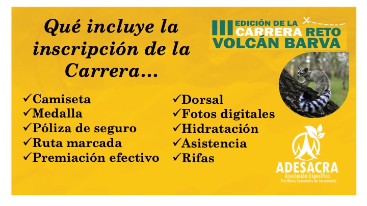 La carrera se llevará a cabo el domingo 17 de marzo a las 8: 00 a.m. y su salida será en la Plaza Sacramento y tendrá una distancia de 12 kilómetros. El valor de la inscripción a dicha carrera será de 1500 colones e incluye una camiseta, medalla, póliza de seguro, ruta marcada, premiación, el respectivo dorsal, fotografías digitales, hidratación, asistencia y rifas.