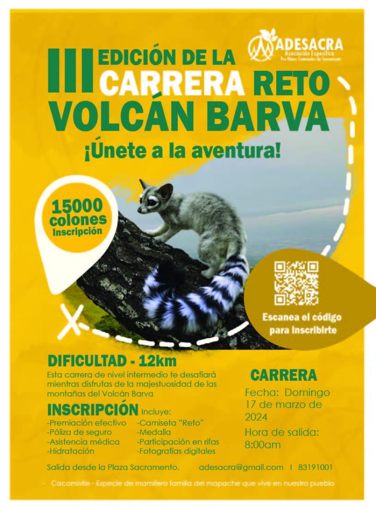 En el cantón de Barva en Heredia, se desarrollará la tercera edición de la carrera Reto Barva, con el fin de recaudar fondos para la restauración de la escuela de Sacramento.