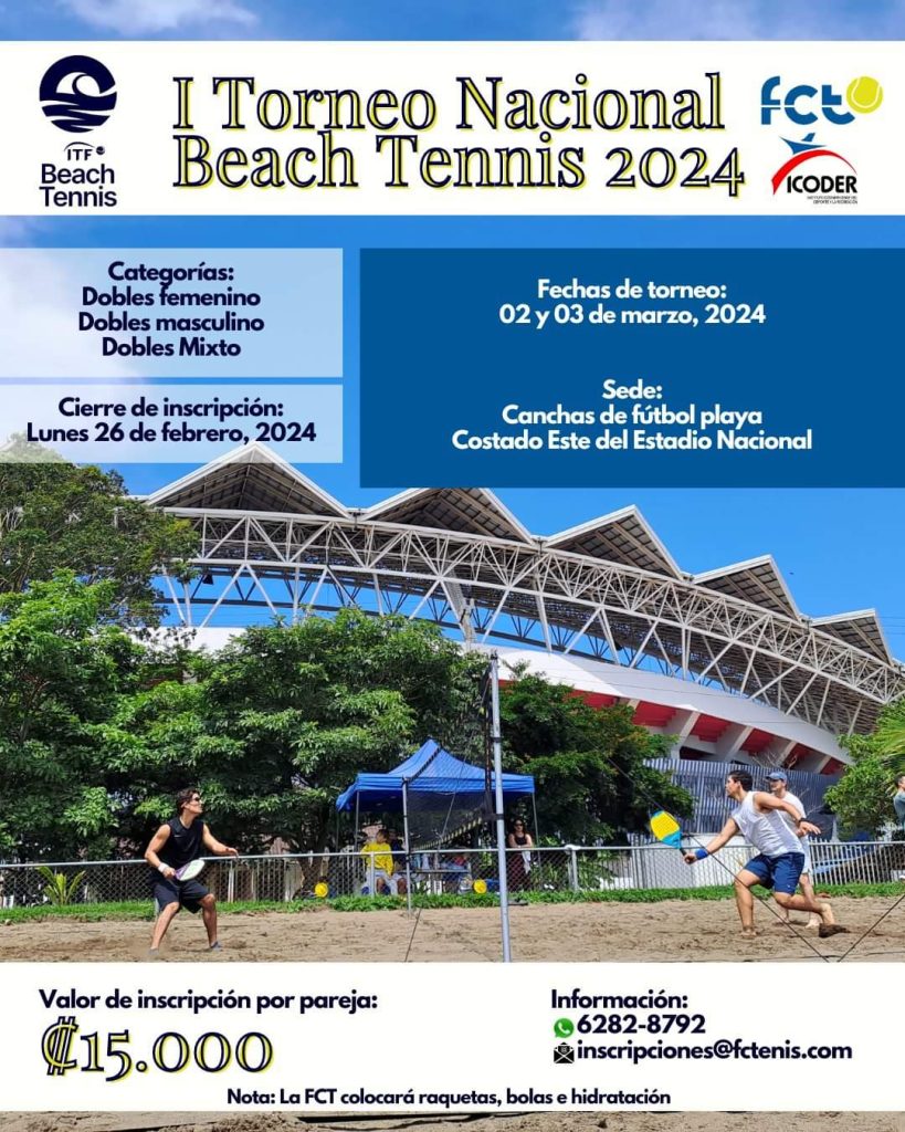 La Federación Costarricense de Tenis anunció por medio de sus redes sociales que la primera edición del primer torneo Beach Tennis o tenis de playa 2024 se llevará a cabo el 2 y 3 de marzo respectivamente.