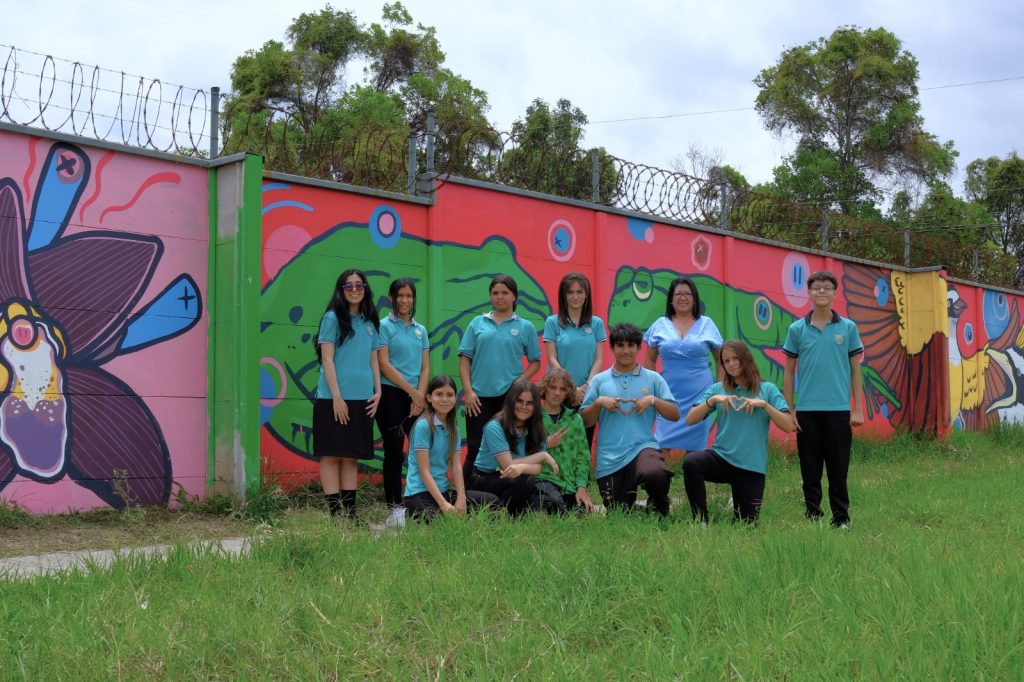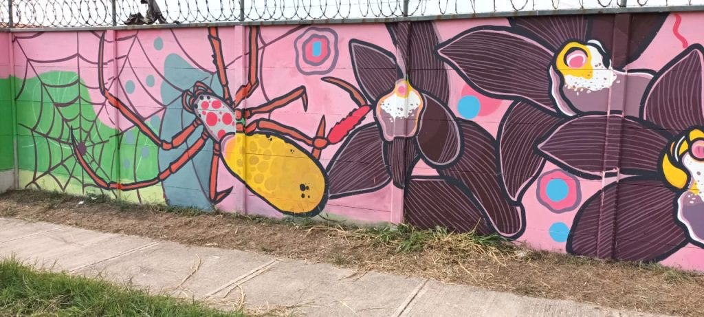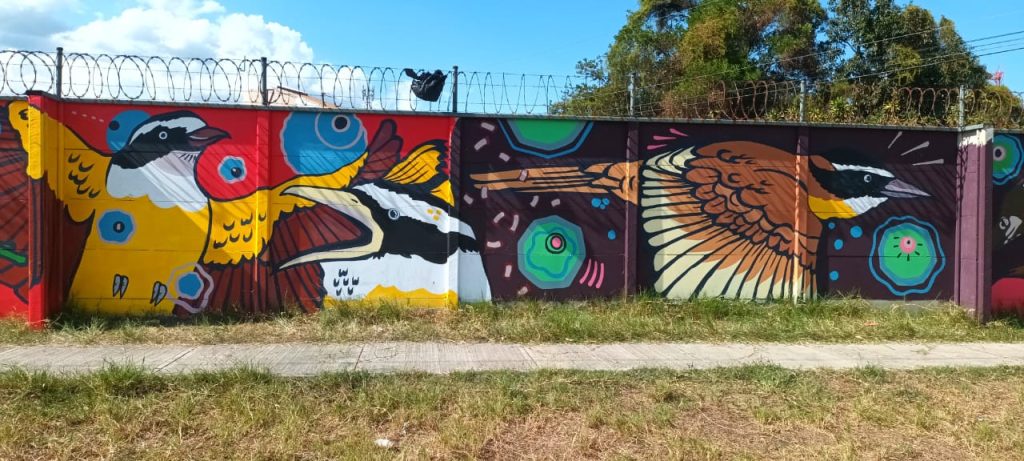 El Colegio Técnico Profesional de Guararí, en Heredia tiene hermosos murales que rodean la institución y evocan aspectos representativos de la comunidad como sus 23 especies de flora, fauna y espacios de paz.