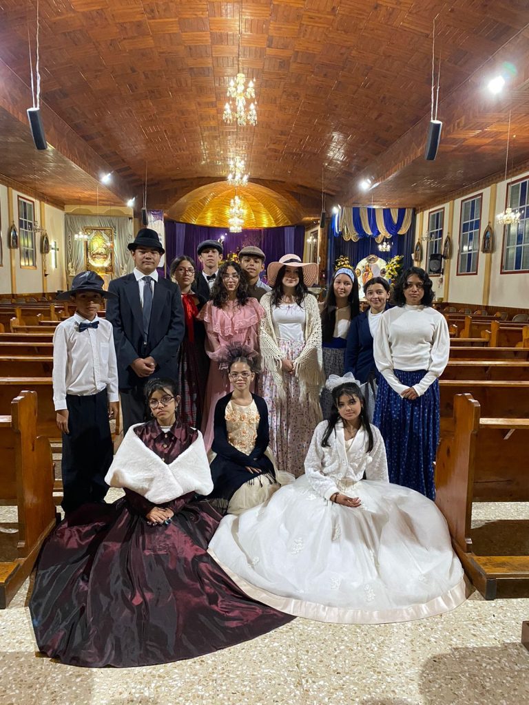 Estas fotos corresponden a una representación histórica del grupo Viajeros del Tiempo, Profe Jona, quienes compartieron con los pobladores de ese lugar de montaña.