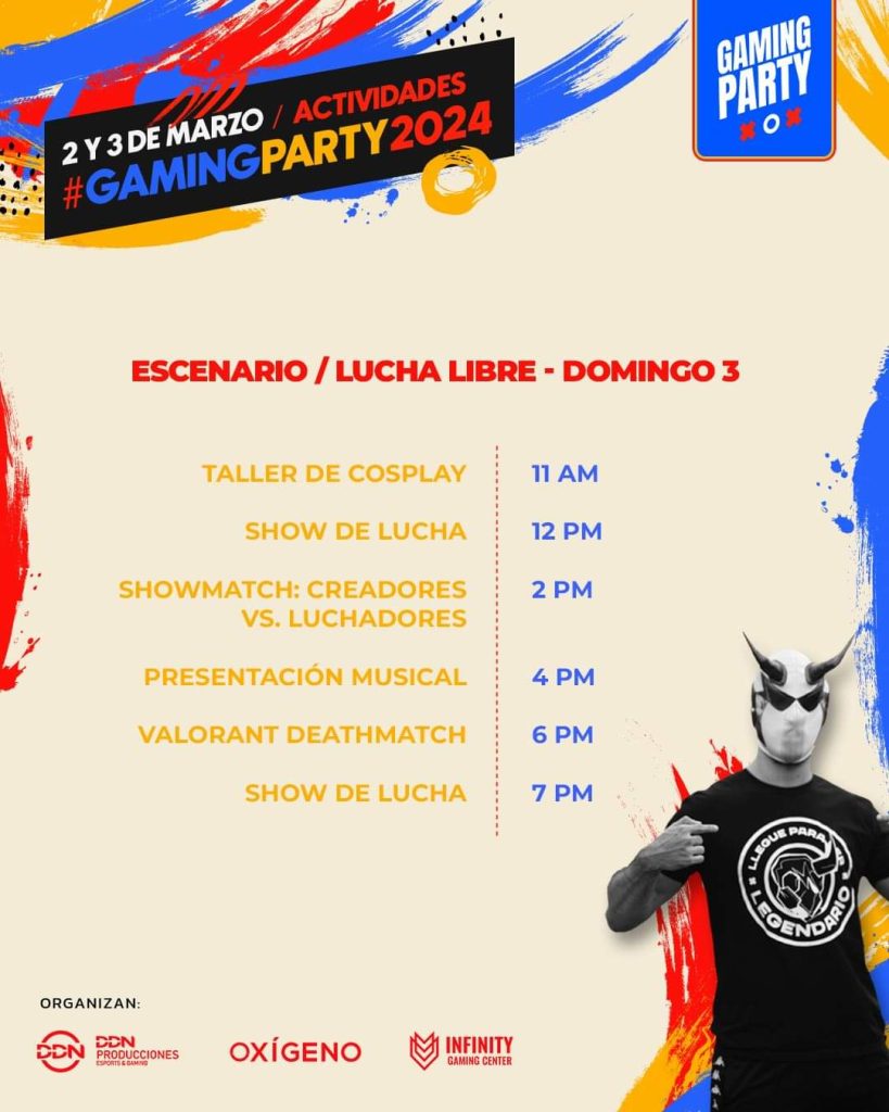 Las personas que son seguidoras de los videojuegos, así como de espectáculos como la lucha libre podrán disfrutar de estas y muchas más actividades en el Gaming Party 2024, evento gratuito el cual se lleva a cabo en el centro comercial Oxígeno ubicado en Heredia.
